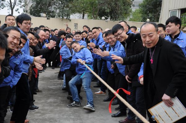 在下午4點鐘,下半場的趣味活動在第一輪的拔河淘汰賽中正式拉開了序幕,活動有拔河、五人六組、喝雪碧比賽、套圈圈等活動。每一場拔河都熱鬧非凡,有助威吶喊的、監(jiān)督人數(shù)的、出謀劃策的、宣導技術要領的、監(jiān)督落實技術規(guī)范的等等,該游戲把團隊協(xié)助、團隊精神和集體榮譽展現(xiàn)的淋漓盡致。其它各項游戲在拔河休息的時間段內(nèi)有序展開,每次游戲都為家人們帶來了無限的喜悅與歡笑。
